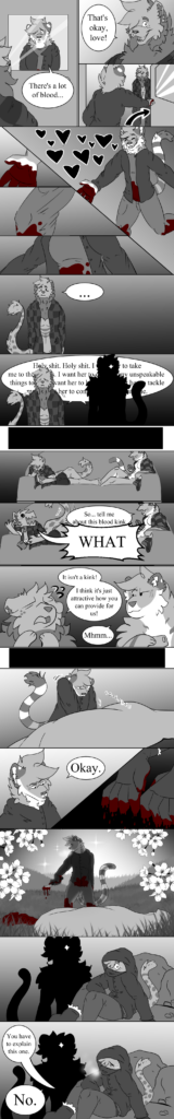 This is a gathering of as many comics as I can manage on here, with respect to exclusive ones posted only on Patreon and OnlyFans. This means that as you begin any section, you will first see some of my older work, and as you scroll, you will begin to see my newer pieces below. This is most evident in the “Dance With A Tiger” section regarding my life with my wife. Hopefully this is a fun reflection of my growth over time, and not annoying.