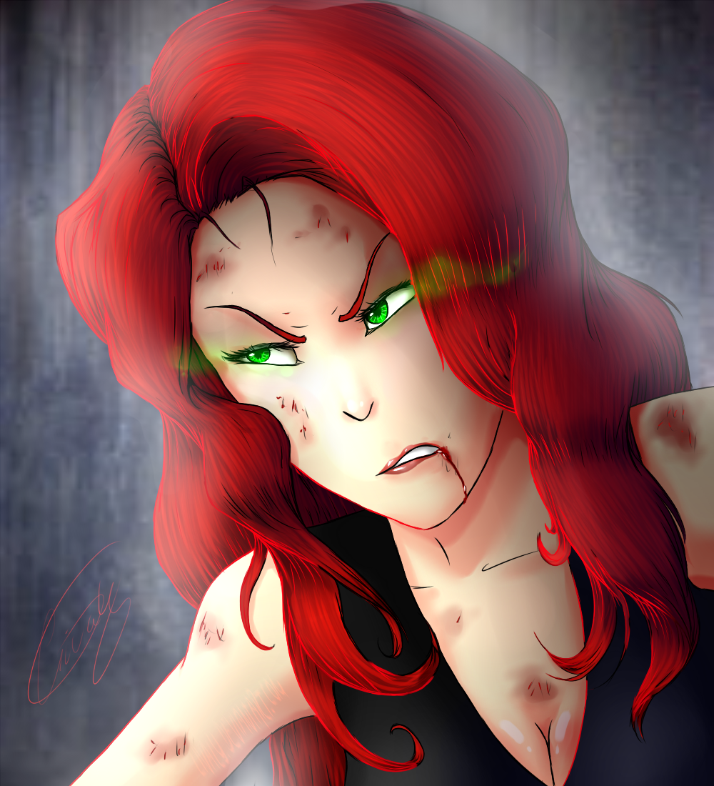 An awesome shot of Jade, from Viridis, looking as if she just got into a fight!
